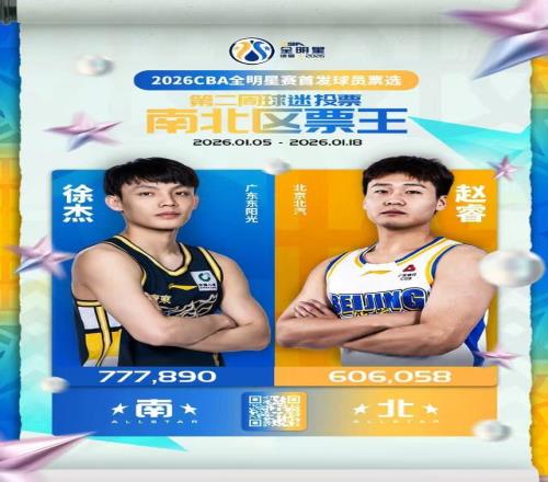 北京时间1月19日,CBA官方公布2026年全明星投票第二周票数情况,徐杰超过77万票成为南区票王与总票王,也是唯一超...