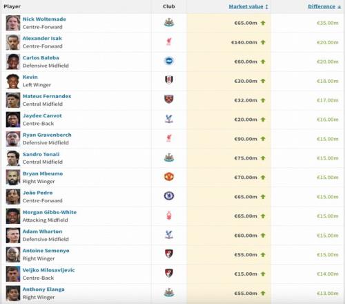 英超身价涨幅榜:沃尔特马德狂飙3500万欧,伊萨克上涨2000万欧 懂球帝 2025-10-17 22:01:01 英超身价涨幅榜:沃尔特马德狂飙3500万欧,伊萨克上涨2000万欧更多消息,稍后带来。 英超涨幅榜沃尔特马德伊萨克一世 上一篇: 吉鲁:重返法甲不是为了养老没觉得法甲和意甲有太大差距下一篇: 赋闲1年!60岁名帅想执教曼联:如果阿莫林下课他有机会