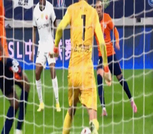 比赛的第15分钟,蒋光太回传,兰克尔泽禁区内被颜骏凌绊倒,主裁判第一时间判罚点球。兰克尔泽抱着球走向点球点,两队球员互相推搡,海港球员非常不满。