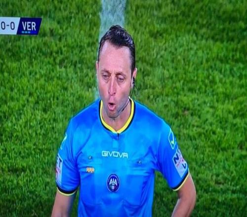 比赛临近尾声,主裁阿比索判罚维罗纳37号球员贝拉-科沙在本方禁区对莱切前锋卡马尔达犯规,在经过VAR回看后,阿比索向全场观众宣布判罚时出现了口误:“经VAR回放,乌迪内斯37号球员在禁区内并未犯规。最终判罚:点球取消。维罗纳,对不起!维罗纳,对不起!”